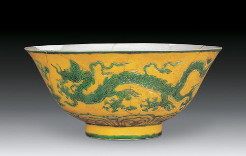 (圖6 明成化黃地綠龍紋碗,景德鎮(zhèn)珠山御廠出土。)