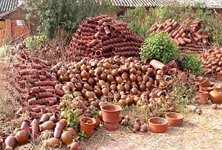 在云南省建水縣工藝美術(shù)陶廠的廠區(qū)里,一些制作好的紫陶器具隨意堆放著。本報記者 李倩 攝