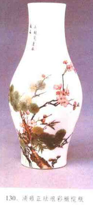 鼓腹,口足內(nèi)斂,平底或圈足,形似橄欖。有素身與瓜棱式之分。為清代流行器形,始創(chuàng)于順治朝。雍正、乾隆時最為常見。(見圖130)