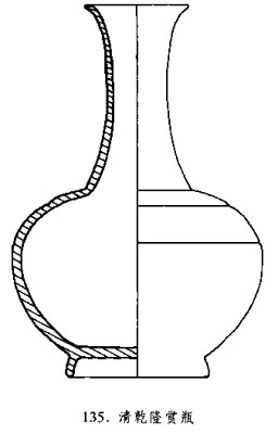 瓶式之—,是清代雍正朝新創(chuàng)造型,一直延續(xù)至清末宣統(tǒng)朝,成為官窯傳統(tǒng)器形。瓶呈撇口,長頸,圓腹,圈足,多以青花纏枝蓮為飾,取其“清廉”諧音,專用于皇帝賞賜臣下,意在令其“為政清廉”。同治以后又增添粉彩與單色釉描金等品種,并改稱“玉堂春瓶”。(見圖135)