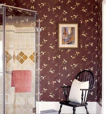 防水壁紙的表層附有壓膜,一般的水漬都不會(huì)留下印記。但是防水性能再好,也要做好衛(wèi)浴里干、濕區(qū)的分離設(shè)計(jì)。用瓷磚或馬賽克單獨(dú)辟出盥洗、淋浴區(qū)域;安放坐便器和儲(chǔ)物的空間周?chē)鷦t可使用壁紙裝飾。