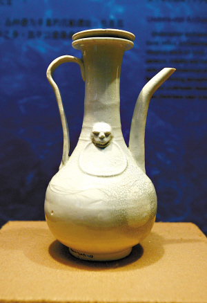 “南海一號”沉船中出水的青白釉鋪首執(zhí)壺瓷器。楊勤/攝