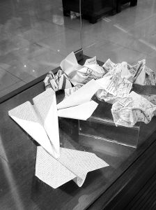 此次展覽還展示了世界現(xiàn)代陶瓷藝術(shù)發(fā)展至今,藝術(shù)語(yǔ)境的改變。從過(guò)去的唯美、實(shí)用向關(guān)注生活邁出了一大步。比如,“紙飛機(jī)”不僅讓人聯(lián)想到兒時(shí)的折紙游戲,倍感親切,藝術(shù)家在“紙”上印滿了二進(jìn)制的數(shù)字組合,還形象表述了在網(wǎng)絡(luò)時(shí)代,作為一代代延續(xù)情感和信息來(lái)往的書寫信件逐漸消失,而網(wǎng)絡(luò)情感卻又像紙飛機(jī)那樣薄得脆弱。
