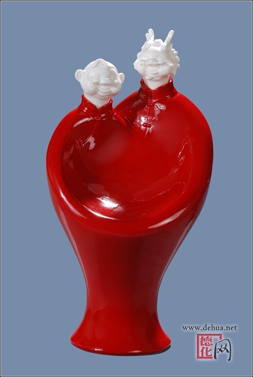 最值得稱道的是陳仁海大師開創(chuàng)性的將生肖文化融入和諧文化之中,創(chuàng)造了“中國白”、“中國紅”“和諧一家”生肖個性化全家福系列收藏瓷雕。他將生肖這一炎黃子孫的生命守護神,從精神層面物化成可看可摸的物質(zhì)形態(tài),從中國傳統(tǒng)的石刻造像,民間剪紙與當(dāng)代動漫等造型藝術(shù)中,捕捉生肖造型的神韻,提煉成一種充滿藝術(shù)魅力的“中國白”十二生肖肖像圖式,將十二生肖肖像與精心設(shè)計制作的“中國紅”瓷身完美結(jié)合,并對收藏者的生肖進行個性化制作,從而形成“唯一”的只屬于自己的特殊紀(jì)念瓷雕。“和諧一家”系列生肖紀(jì)念瓷,有寓意夫妻恩愛的新婚、銀婚、金婚結(jié)婚紀(jì)念瓷“和和美美”;有寓意家庭幸福美滿的“圓圓滿滿”;有寓意夫妻相親相愛的“白頭偕老”等等。陳仁海大師的“和諧一家”生肖紀(jì)念瓷,其創(chuàng)意的思想力深刻、智慧、親和,對和諧社會建設(shè)起到了積極的推動作用。作品一經(jīng)出爐,預(yù)定者駱繹不絕,成為人們饋贈和收藏的時尚禮品。