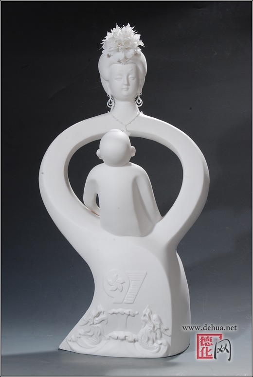 1997年7月1日,香港回歸祖國,一洗百年國恥。陳仁海大師的一款“紫歸牡懷”(子歸母懷)“中國白”作品應(yīng)運而生。作品選用上乘“中國白”瓷土,構(gòu)思巧妙,制作精細(xì),作品以母子相擁為基本構(gòu)圖,線條簡潔,人物生動,寓意深刻,通體潔白如玉,現(xiàn)已成為香港回歸歷史事件的重要藝術(shù)珍品。