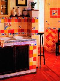 而蜘蛛在較現(xiàn)代的設(shè)計理念中融入了流行的水晶和手繪風(fēng)格。水晶釉面內(nèi)含豐富的漸變色層,在光線的映照下,呈現(xiàn)出瑩潤剔透的景象;在同一色系的壁磚中,還有精心手繪的鑲嵌型圖案磚,以同樣花紋作底的腰線也是手繪的杰作,這樣使顏色的深淺形成跳躍,令整個墻面產(chǎn)生意想不到的視覺震撼力。