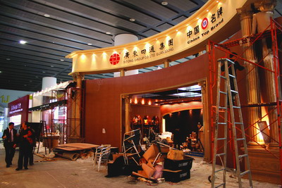 進(jìn)入陶瓷展展廳,第一眼就能看到廣東四通集團(tuán)有限公司那最高大最富麗堂皇的展位。從3月17日早上到下午,四通的展位布展工作一刻都沒(méi)有停止過(guò)。記者幾次的采訪要求,都被婉言謝絕。那么,就請(qǐng)跟隨記者的目光,一同從視覺(jué)感官上來(lái)認(rèn)識(shí)一下“四通”風(fēng)采吧。