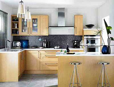 廚房的墻面必須以實用為主,但新型材料的出現(xiàn)為其裝飾功能奠定了基礎(chǔ)。在能解決油煙的前提下,你可以嘗試使用涂料和墻紙,它們色彩艷麗,花紋豐富,一改廚房墻壁單調(diào)的局面。這時選擇的涂料墻紙要有很好的耐擦洗性和多層覆蓋性。在水池和灶臺附近,可以用玻璃、金屬等合成材料制作的隔油層釘在墻上。