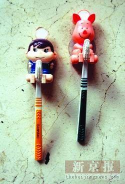 近日,記者在市場(chǎng)上發(fā)現(xiàn)了一些有趣的牙具架,它們?cè)煨透鳟,后面帶有一個(gè)小吸盤,可以牢牢地粘貼在衛(wèi)生間光滑的瓷磚上,有的可以“抱”住牙刷,有的可以架住毛巾,既實(shí)用,又給衛(wèi)生間增添了許多情趣。