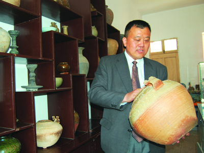 今年46歲的朱金林種過田,跑過運輸,也開過飯店,13年前,他還在開車跑運輸時就喜歡上了古陶瓷,每到一個地方,他總要抽時間到古玩市場去看一看,看到喜歡的陶瓷就買一些。為了增加專業(yè)知識,他從《古陶瓷鑒定》、《唐五代瓷》等書籍中學習,逐漸提高了自己的鑒別真假古陶瓷的能力,慢慢地也能揀到一些“漏”。為了讓妻子理解自己的愛好,他有意識地向妻子推薦中央電視臺的《鑒寶》欄目,如今妻子對丈夫的愛好也十分理解,昨天在陳列室對外開張時,她里里外外忙個不停。