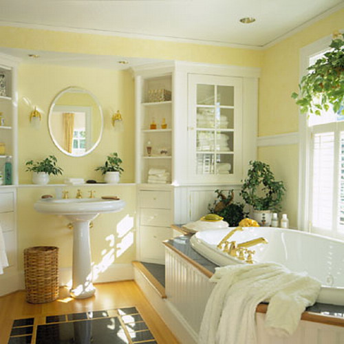 記得哪位設(shè)計(jì)師說過的,和房間一樣的衛(wèi)生間,柱式洗手盆雖然沒有辦法提供儲(chǔ)存物品的空間,但由于其挺拔美觀的造型風(fēng)格而倍受推崇。 這浴室已有兩個(gè)儲(chǔ)物墻柜,配上簡潔的柱式洗手盆極為適合。墻柜上部裝玻璃門,增加了通透感,側(cè)面向洗手盆斜開,既避免了方正呆板的形狀,又能在洗手盆前順暢地使用抽屜。