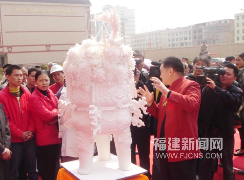 中新福建網(wǎng)泉州三月十四日電 (記者 黃瑤瑛)一座高一百二十九厘米、直徑七十二厘米的“奧運(yùn)《和鼎》”,經(jīng)應(yīng)用有上千年歷史的國(guó)家級(jí)非物質(zhì)文化遺產(chǎn)德化瓷燒制技藝,在“中國(guó)瓷都”福建德化燒制成功。這是德化陶瓷藝人為迎接二00八北京奧運(yùn)會(huì)而特制的一份厚禮。