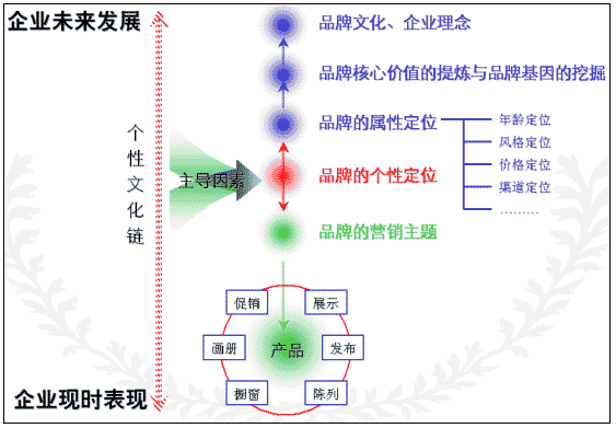 在品牌個(gè)性文化鏈的對(duì)內(nèi)營(yíng)運(yùn)行為的約束中,其基礎(chǔ)是尋找品牌的基本屬性定位,在不同的品牌產(chǎn)品屬性之中,將自我品牌的產(chǎn)品屬性定位進(jìn)行確認(rèn),包括其應(yīng)包含的品牌年齡定位、風(fēng)格定位、營(yíng)銷(xiāo)渠道定位、價(jià)格定位等等;繼而再向內(nèi)延伸到品牌核心價(jià)值的提煉與品牌基因的挖掘,使品牌具有更為深層次的識(shí)別內(nèi)容,加深品牌內(nèi)在的識(shí)別體系,進(jìn)而讓品牌具有更加豐富的品位與內(nèi)涵;在此基礎(chǔ)之上,品牌的個(gè)性文化與企業(yè)文化、企業(yè)理念息息相通,是企業(yè)文化與企業(yè)理念在品牌上的獨(dú)立化表現(xiàn),也同樣是凝聚為品牌服務(wù)的各類(lèi)員工、伙伴、資源體而產(chǎn)生的聚合力。