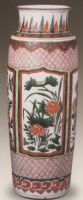 說 明: 此瓶造型古樸,圖案四面開光對稱,施彩艷麗.通過諸方面排比分析為順治時產(chǎn)品.