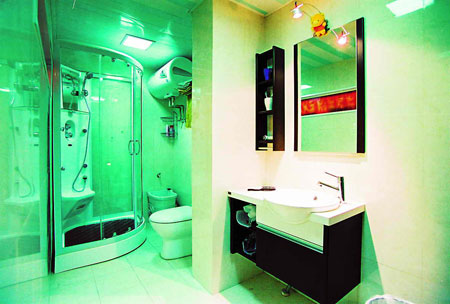 中式風格一直延伸到衛(wèi)生間里,浴室柜上依然是古色古香的鎖扣和雕花的圖案,搭配鏡子的邊框和射燈,與現(xiàn)代的衛(wèi)浴設施很好地融為一體。內嵌式的浴缸在增加空間層次的同時也縮短了空間的狹長感。設計師采用了花色的瓷磚,在燈光下營造出溫暖輕松的環(huán)境。