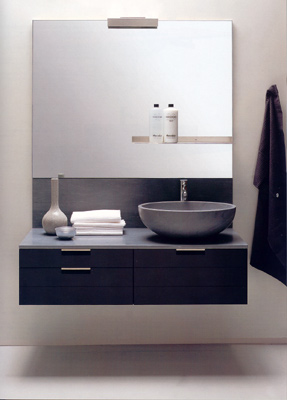 由于色調(diào)比較暗,這間浴室適合光線充足的房間。收納物品時應(yīng)選擇與之同色調(diào)或跳眼的紅色。
