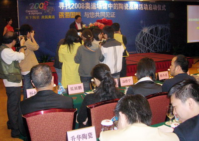 瓷海國際為唱響參與奧運建設(shè)的陶瓷企業(yè)及品牌,連同搜狐、《陶城報》精心策劃舉行的一個時間跨度長、內(nèi)容豐富、與消費者及設(shè)計師互動性強(qiáng)并線上線下進(jìn)行全方位傳播大型活動——天下陶瓷·共筑奧運“尋找2008奧運場館中的陶瓷品牌”3月26日下午假廣東佛山賓館三樓會議廳新聞發(fā)布會簽約揭牌宣布了正式啟動。到場嘉賓有:搜狐廣州首席代表姚竑彥,佛山人民廣播電臺臺長助理、交通旅游音樂廣播網(wǎng)聯(lián)席運營總監(jiān)謝詩華,中國室內(nèi)設(shè)計研究院佛山聯(lián)絡(luò)處主任湯浩寧,《陶城報》社長劉小明,廣東省裝飾行業(yè)協(xié)會專業(yè)委員會顧問胡小梅和新中源、鷹牌、東鵬等14家參與奧運建設(shè)的陶瓷品牌企業(yè)代表。