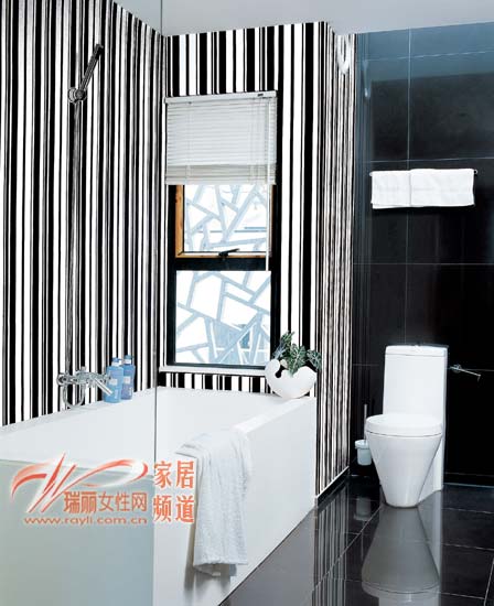用黑色與白色布置臥室和衛(wèi)浴間,要想簡約而不單調(diào),彰顯出魅力而又不過于超現(xiàn)實(shí)和冷冰冰,就需要讓黑色與白色有所變化,并加入一些非常具有女性化特質(zhì)的裝飾。黑白條紋相間的臥室基調(diào),營造出十分時(shí)尚的效果。在漂亮的黑與白當(dāng)中,加入款式相近的吊燈、蝴蝶圖案的白色單人座椅、紫色的臺(tái)燈和各種優(yōu)雅的白色布藝,時(shí)尚而超前的臥室和衛(wèi)浴間變得非常高貴而典雅。