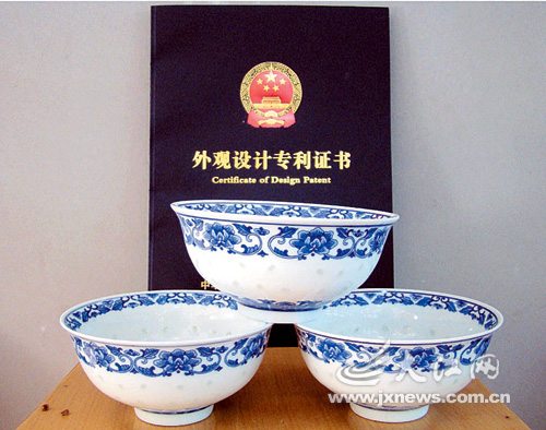 通過對全國多個(gè)城市兩年多的市場銷售情況測算,五寸青花玲瓏牡丹碗最受歡迎。2007年4月,福萬利公司將五寸青花玲瓏牡丹碗申報(bào)了專利,2008年2月27日獲國家知識產(chǎn)權(quán)局審查、通過,并正式公告。