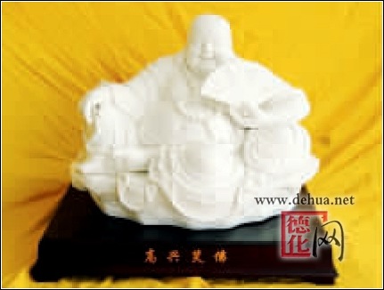 “四美人”分別為貴妃醉酒、西施涴紗、貂蟬拜月、昭君出塞,每尊高35厘米,作者利用“中國白”傳統(tǒng)瓷雕燒制技藝,做工細(xì)膩精致,造型簡潔流暢,形體豐滿,高貴柔媚,那薄如紙的瓷質(zhì)衣著,細(xì)如絲的瓷質(zhì)裙帶,把中國古代四大美女形象表現(xiàn)得淋漓盡致!陡吲d笑佛》高58厘米,寬40厘米,倚坐山崖之上,雙耳垂肩,笑口大張,左手持扇,右手握珠,一個(gè)坦蕩和善、笑容可掬的彌勒佛像呼之欲出。作者以皓玉瓷為材料,在創(chuàng)作上以簡馭繁,大氣不拘,傳神地塑造出彌勒的形象,達(dá)到神形的和諧統(tǒng)一。