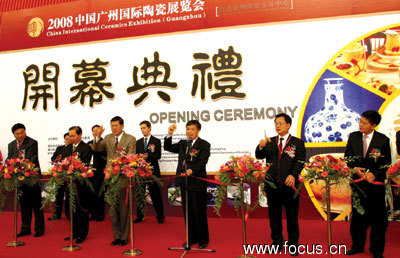 由中國對外貿(mào)易中心(集團)和中國陶瓷工業(yè)協(xié)會主辦,潮州市人民政府、湖南省商務(wù)廳、廣西商務(wù)廳、德化縣人民政府、香港陶瓷商會協(xié)辦,中國對外貿(mào)易廣州展覽公司承辦的2008中國廣州國際陶瓷展覽會,3月18日在廣州中國進出口商品交易會琵洲展館二期展廳隆重開幕。