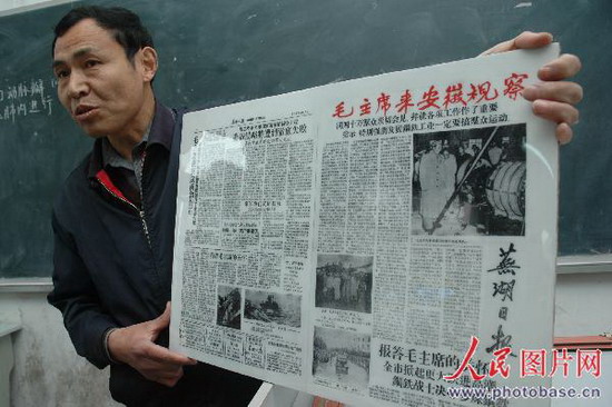 4月1日,一張反映毛澤東第一次到安徽蕪湖視察為主要內容的陶瓷報紙在安徽省蕪湖市第二中學首次公開亮相,報紙選自1958年9月29日出版的《蕪湖日報》,制作規(guī)格42x60cm,按1:1.2比例放大,重約6千克。研發(fā)人為蕪湖市民集報迷程正發(fā),目前他正在創(chuàng)制一套5張迎奧運的陶瓷報紙!