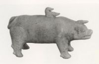 說(shuō) 明: 胎白色,青釉微黃.狀似牛,體肥壯.