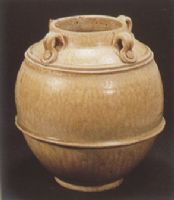 說 明: 胎色灰白.釉色青中閃黃,施釉不到底,有流釉現(xiàn)象,釉厚處呈玻璃狀.整個器形渾厚飽滿.