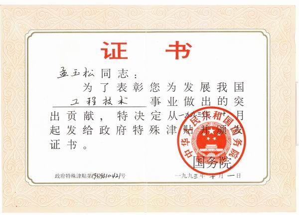 1993年被國(guó)務(wù)院批準(zhǔn)享受政府特殊津貼。