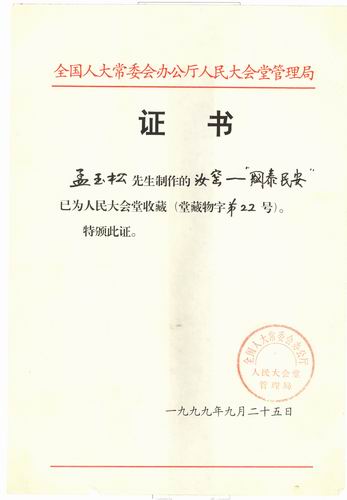 1999年在中華人民共和國(guó)建國(guó)五十周年之際,她制作的國(guó)泰民安大花瓶被人民大會(huì)堂收藏。