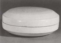 說(shuō) 明: 胎質(zhì)潔白致密,通體施白釉,僅子口接觸處無(wú)釉.此盒制作規(guī)整,工藝水平相當(dāng)純熟.