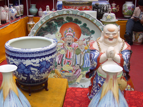 本次景德鎮(zhèn)瓷器展從41日開始為期15天。記者昨日在展會上看到, 近五十個景德鎮(zhèn)瓷器展位里,擺放著琳瑯滿目的花瓶、茶具、家居飾品等,小到一塊錢的玩偶,大到數十萬元的名家精品一應俱全,應有盡有。據了解此次展覽的瓷器共有幾百個品種,包括宮廷青花、高仿琺瑯彩、氣血狼紅、粉彩、雕塑瓷、手繪、釉瓷等。