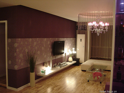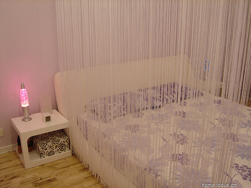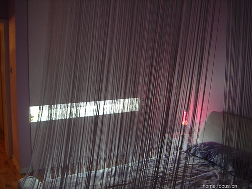 其實當(dāng)初設(shè)計的時候,為電視線預(yù)埋了跟線管,50MM粗的,可電視的插頭竟然那么大,無奈 絲絲線簾營造浪漫感覺