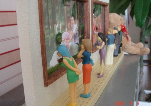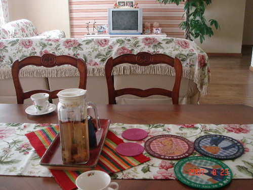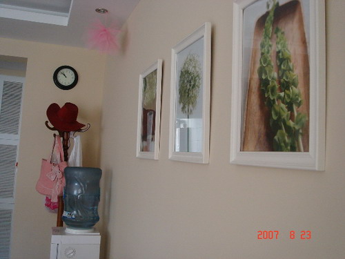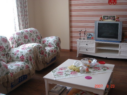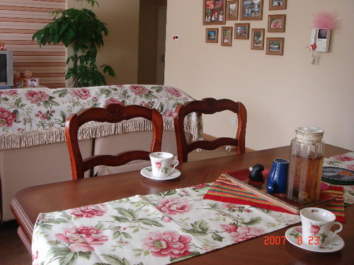 餐桌上的小東東 看這幾幅畫 看看臥室 窗簾的照片,和沙發(fā)巾是一套的,里面的小花是和客廳窗簾相同的花型,不過質(zhì)地是紗的,客廳的質(zhì)地是麻的 圖片:偶家的像框?qū)嵲谑怯悬c(diǎn)多,這個非常有意思哦。。。。一排人正在看展覽,展覽的真是我們自己的PP哦 書房 主衛(wèi)生間 主衛(wèi)生間 廚房,戰(zhàn)斗的地方