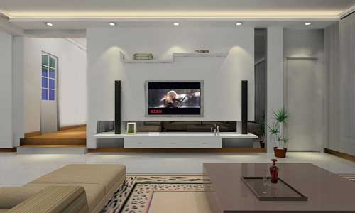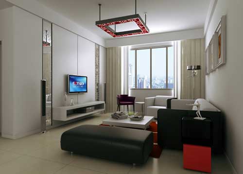 面積適中,簡約實用,絕無小戶型捉襟見肘之感,設(shè)計師采用玻璃作為主材,采用園林中“透”的手法塑造電視墻,大面積玻璃窗使空間更顯開闊。