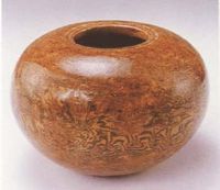 說 明: 內(nèi)壁露白色胎,胎堅(jiān)硬細(xì)密.外壁在淺褐色釉里透出深褐色木紋狀花紋清晰自然.工藝復(fù)雜,是唐代陶瓷的新產(chǎn)品,風(fēng)格別具,色澤協(xié)調(diào).