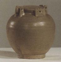 說 明: 五代.胎呈灰色,通體施青釉.器物制作精巧,因其蓋有密封作用,是一種美觀實(shí)用的盛器.