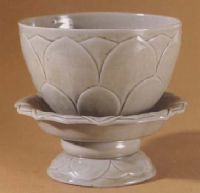 說 明: 五代.全器造型如盛開之蓮花一朵.構(gòu)思獨具匠心.托座底心楷書"項記"款銘.