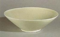 說 明: 五代.胎質(zhì)潔白細(xì)膩,釉色浮白,積釉處見淚痕狀,隱現(xiàn)青黃色.足內(nèi)刻"易定"二字款,為曲陽定器之意.