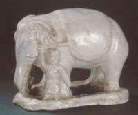 說 明: 五代.胎質(zhì)細(xì)白堅(jiān)致釉潔白瑩潤,垂?jié){釉色微閃青.這是盛行于漢唐時(shí)期"百戲"中"象舞"的一種形象.