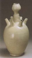 說(shuō) 明: 五代.胎質(zhì)灰白,通體白釉,釉面有冰裂紋,足內(nèi)無(wú)釉.此瓶胎薄體輕,造型俊美.肩飾六管的大瓶,較為少見(jiàn).