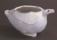 說 明: 五代.通體白釉,雙目黑彩點睛,翅尾為凝聚的玻璃質(zhì)釉.造型巧妙,生動活潑.
