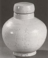 說 明: 胎厚質(zhì)白微泛黃,釉薄色泛青.定瓷刻字記事,是北宋初期定州民窯承做的典型作品.