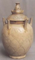 圖片名稱: 越窯刻蓮瓣紋五管蓋瓶