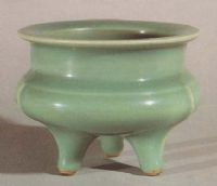 說 明: 胎質(zhì)潔白,釉呈梅子青色,溫潤(rùn)如玉.此釉是龍泉窯代表性品種,系多次上釉,燒制難度很大.為南宋龍泉窯梅子青釉的杰作.