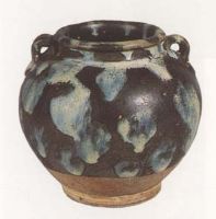 說 明: 胎色灰白.黑釉花瓷是唐代創(chuàng)造的一種獨(dú)特裝飾風(fēng)格,為后來的宋代鈞窯彩斑開啟了先聲.