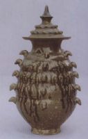說 明: 通體施青褐色釉,褐色釉呈垂釉狀.造型新奇,為北宋時期之物.