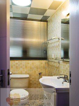 這里原先是個小陽臺,但鄭夫婦考慮到可能以后會有保姆所就把小陽臺變成了小浴室。由于空間只有1.5平方米采用一般的地磚容易滑,而選用馬賽克則是再適合不過了,它不僅鋪設(shè)后美觀而且還有防滑的作用。小空間使用暖色馬賽克是首選,暖黃色使空間顯得更具有親切感。為襯托現(xiàn)代主題的裝修風(fēng)格在窗簾上設(shè)計師采用了銀色百頁簾。在1.5平方米的浴室里安裝普通的門會打不開,所以經(jīng)過考慮之后安裝了折門(這樣的門優(yōu)點是節(jié)約空間,缺點是關(guān)門比較麻煩而且容易使門角損壞),但總的來說浴室給人的感覺既溫馨又不失現(xiàn)代感。