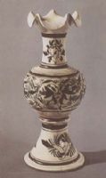 說 明: 造型挺拔秀麗.花紋清新活潑,黑白對比強(qiáng)烈,具有中國寫意繪畫的風(fēng)格,是扒村窯瓷器中的上乘之作.