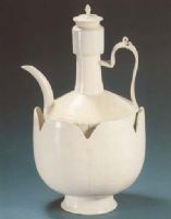 說 明: 胎薄,質(zhì)潔白細(xì)膩.釉薄,積釉處白中泛黃,瑩潤光澤.此注壺造型優(yōu)美別致,做工精細(xì),系遼代白瓷佳品.
